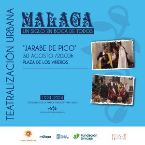 Representación de la obra de teatro ‘Jarabe de Pico’ de Bernardo de Gálvez en la Plaza de los Viñeros, en donde se encuentra el Museo del Vino Málaga y la Hermandad de Viñeros.